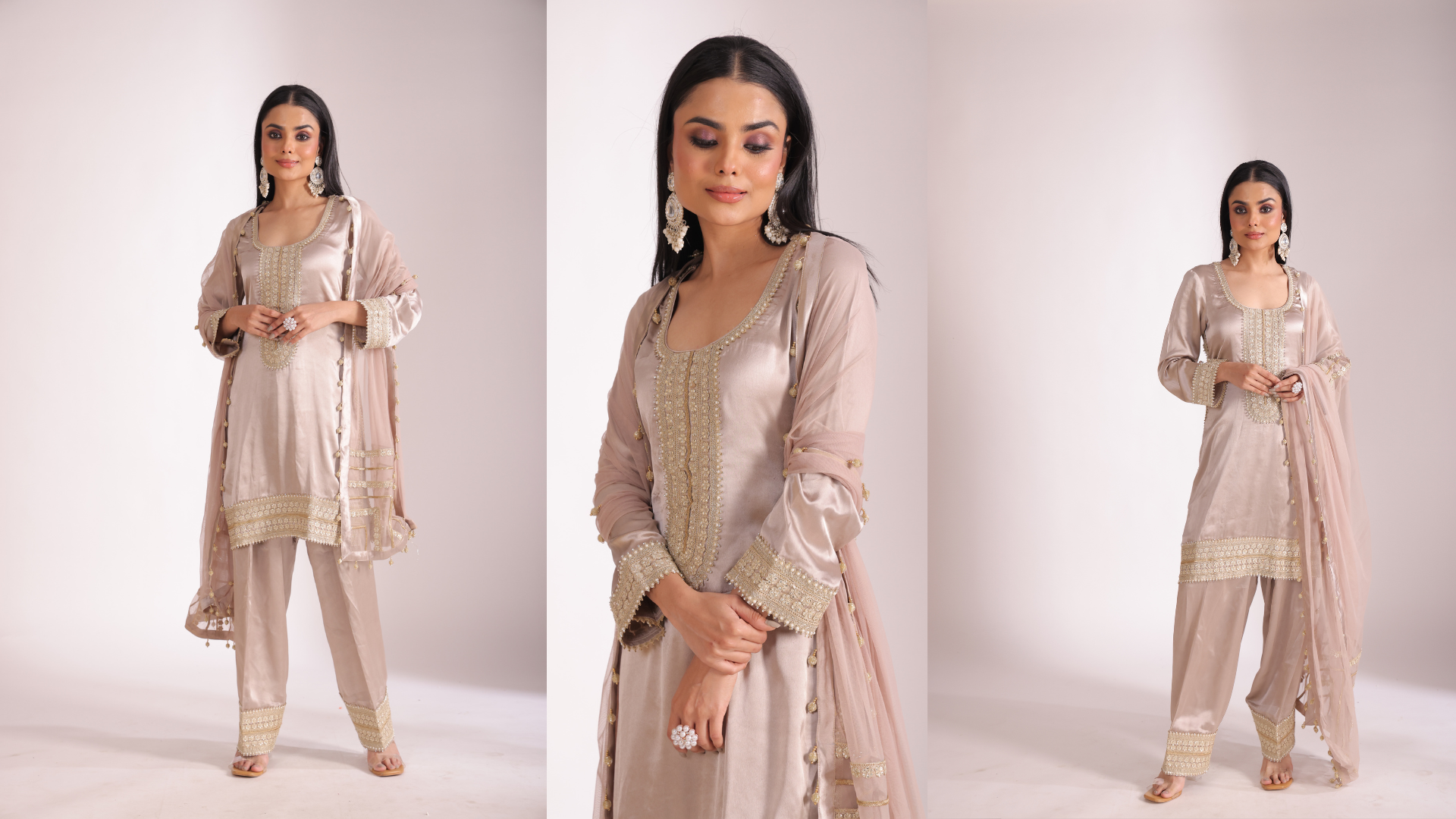 Jhalak Beige Blouse with Lehenga and Dupatta- set of 3