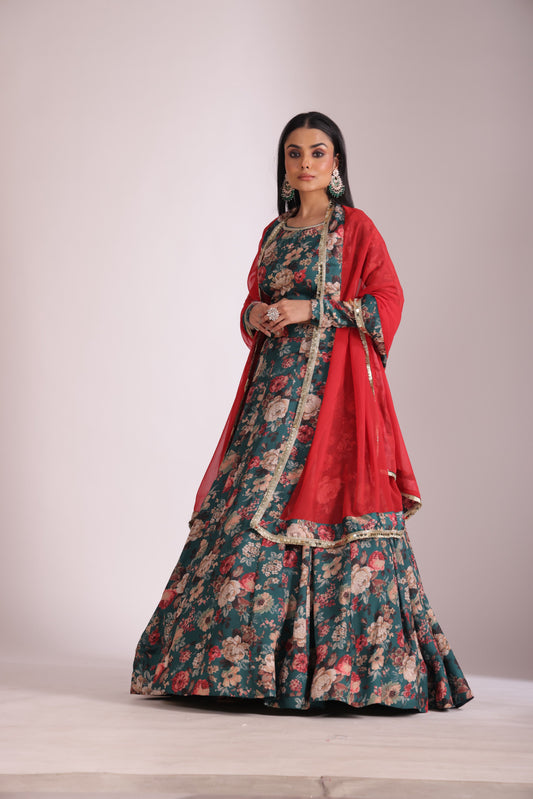 Gulzar Green printed Blouse with Lehenga and dupatta- set of 3
