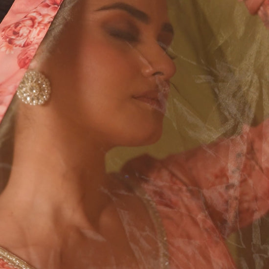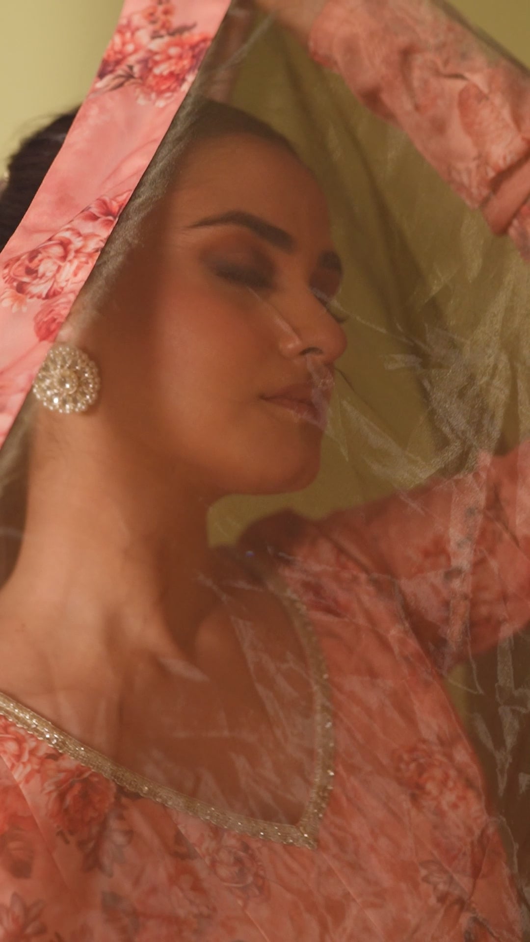 The dupatta is beautifully finished with organza with printed border complimenting the print.