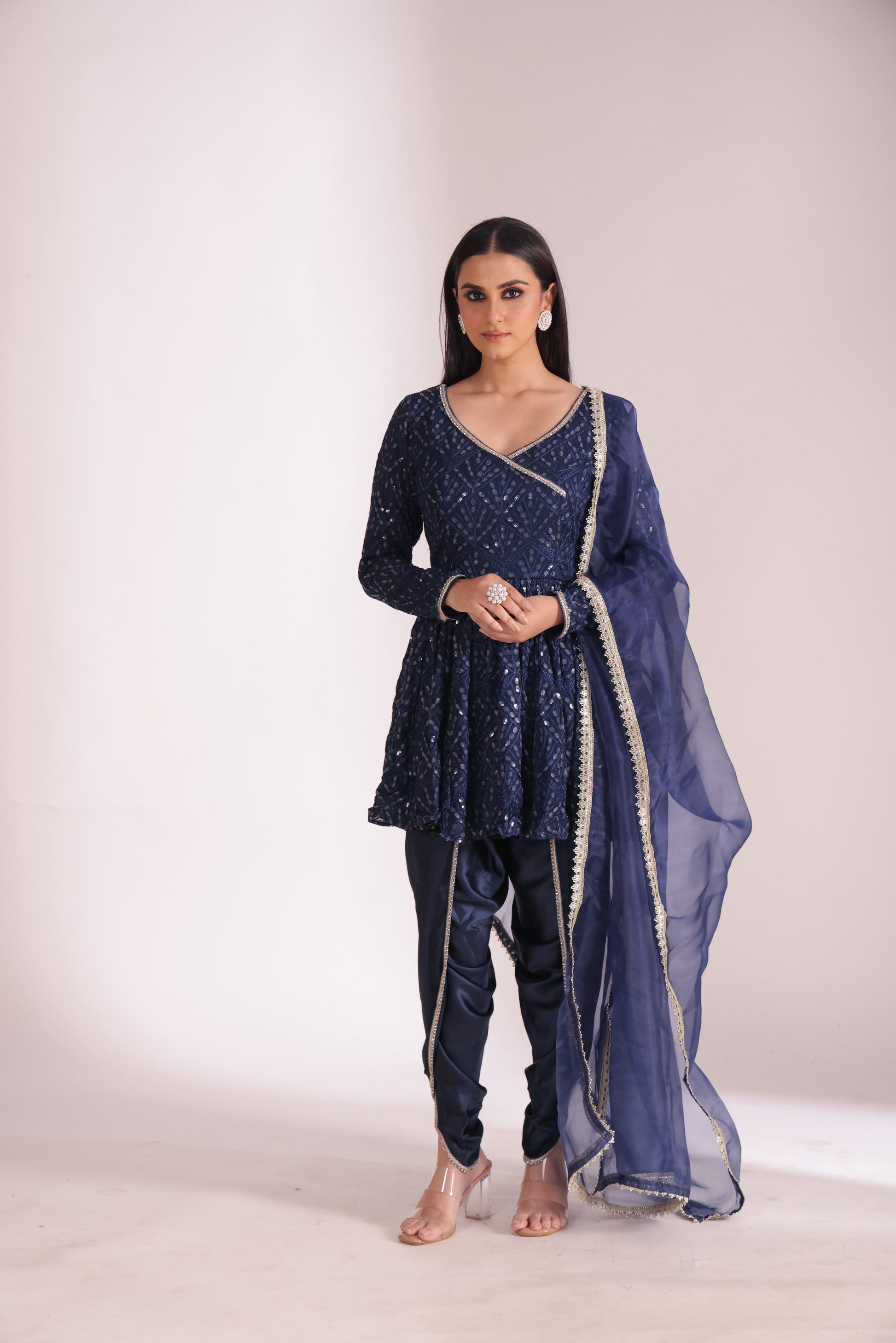 ANGRAKHA LENGTH – 34" DHOTI LENGTH- 40" DUPATTA LENGTH- 2.5m DUPATTA WIDTH- 38"
