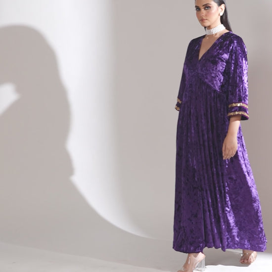 Noor-E-Zar Purple Velvet Anarkali with Velvet Palazzo and Shawl - Set of 3